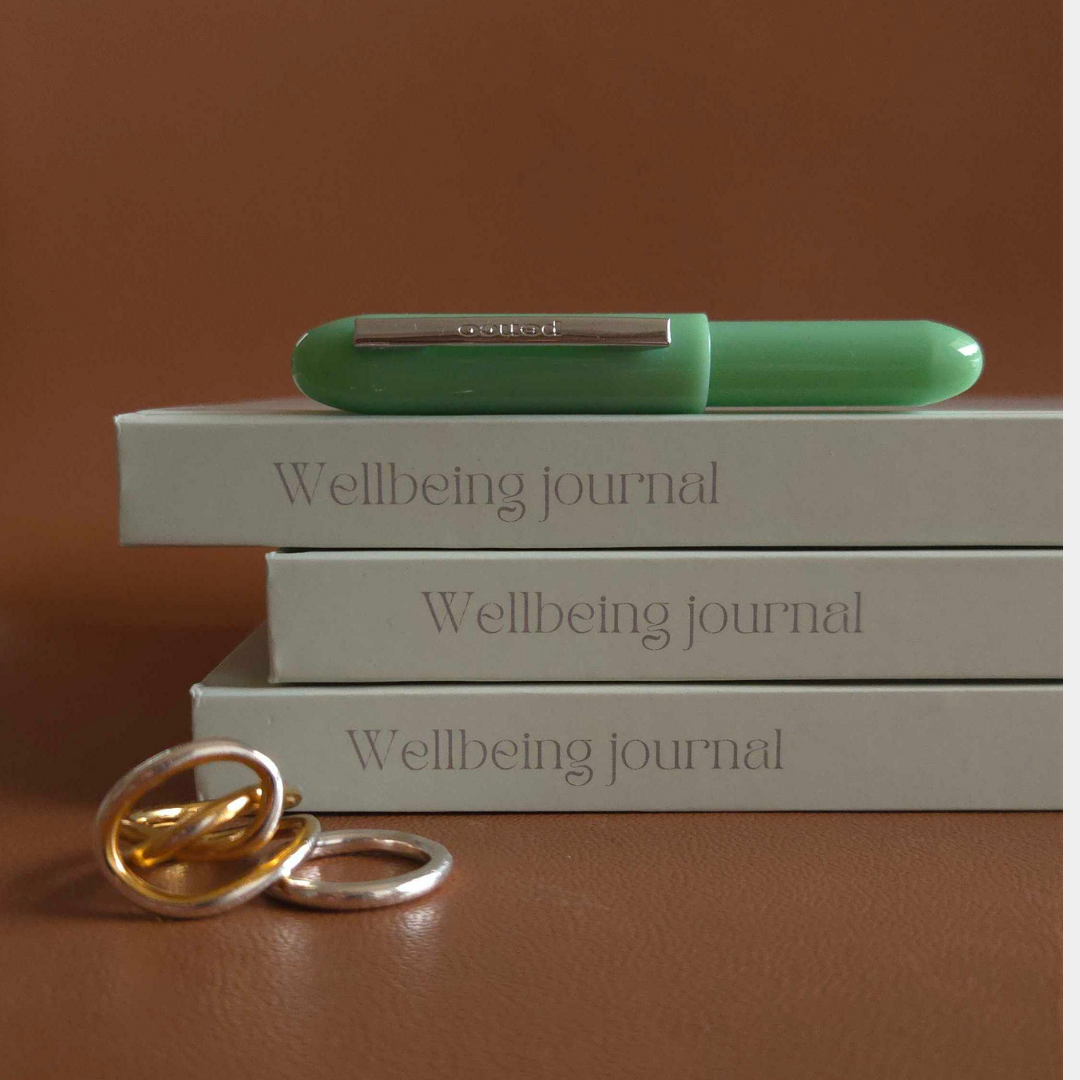 Wellbeing journalのジャーナリングブックは誰でも簡単に自分の”今”の心の状態と向き合うことができる質問形式のフォーマット。